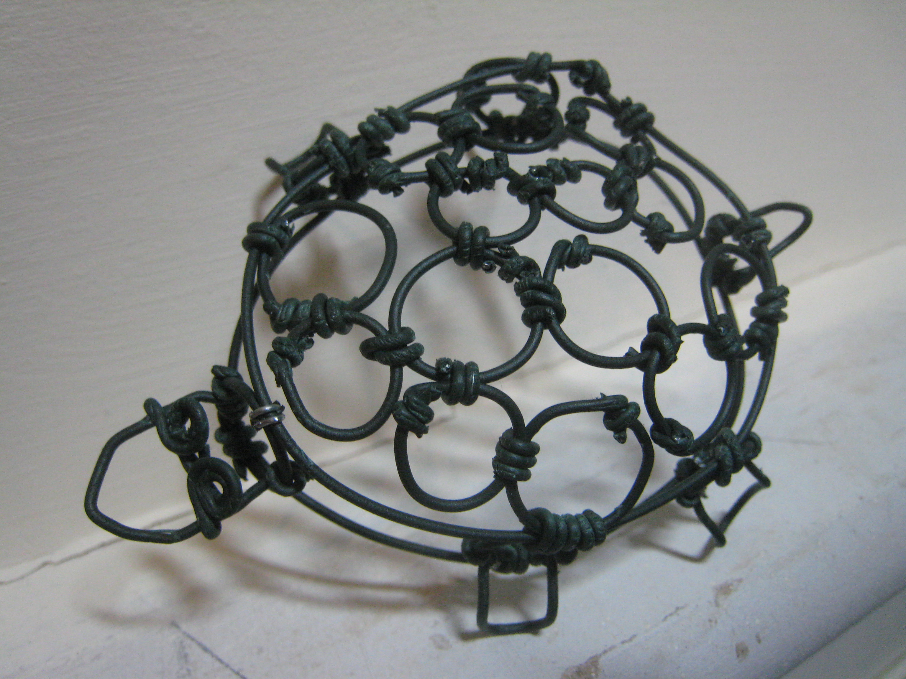 This little guy was by far the most painful thing I’ve made to date. All those tiny pieces of wire to connect the circles were sharp, pointy, and the shorter the wire the harder it is to bend, so they were not interested in cooperating with me. I tried to tell them, “Look, wire, you’re going to be made into art, can’t we work this out?” And they said, “Hell no! I never asked to be no damn turtle!” They’re pretty blasphemous.