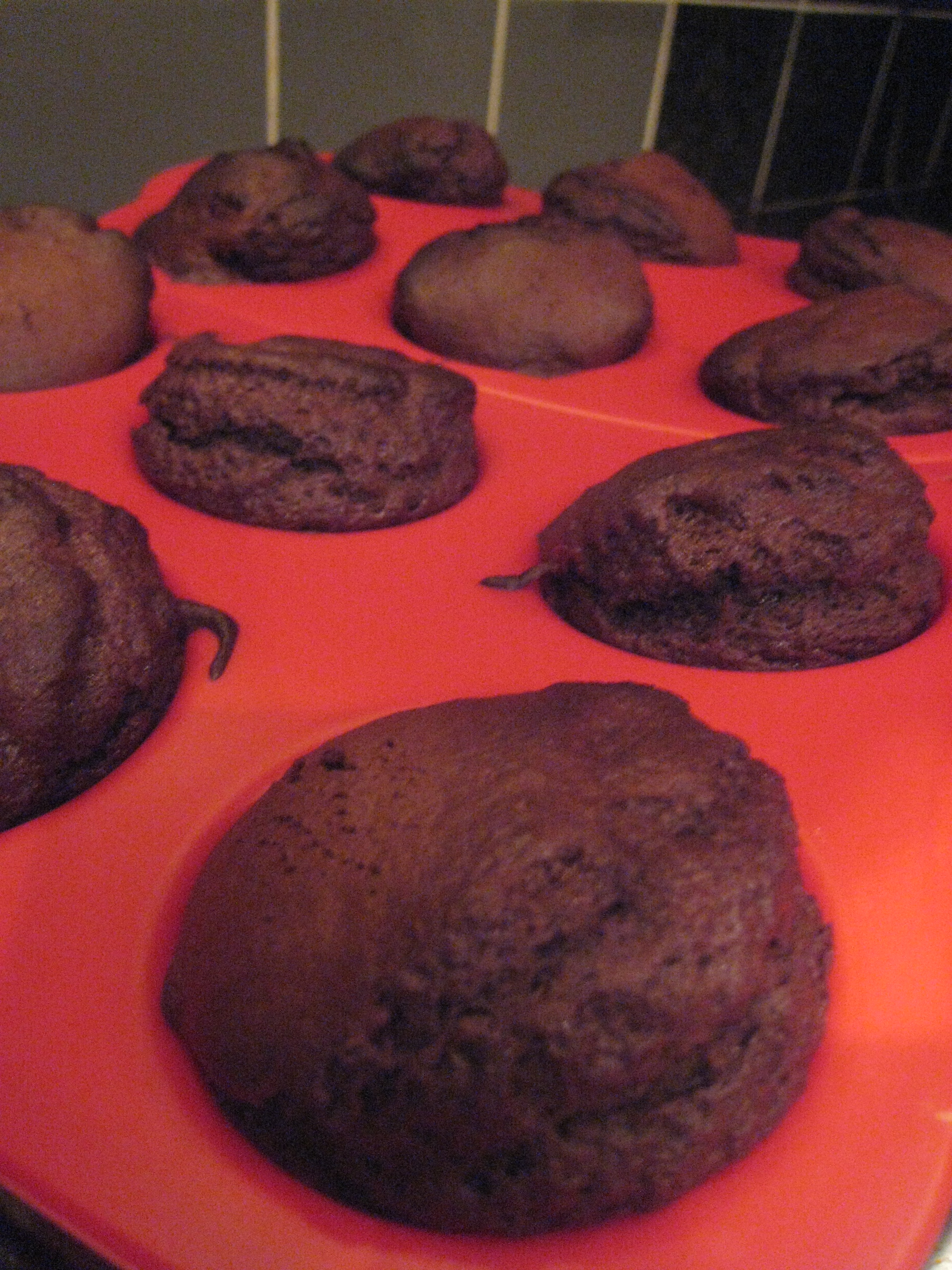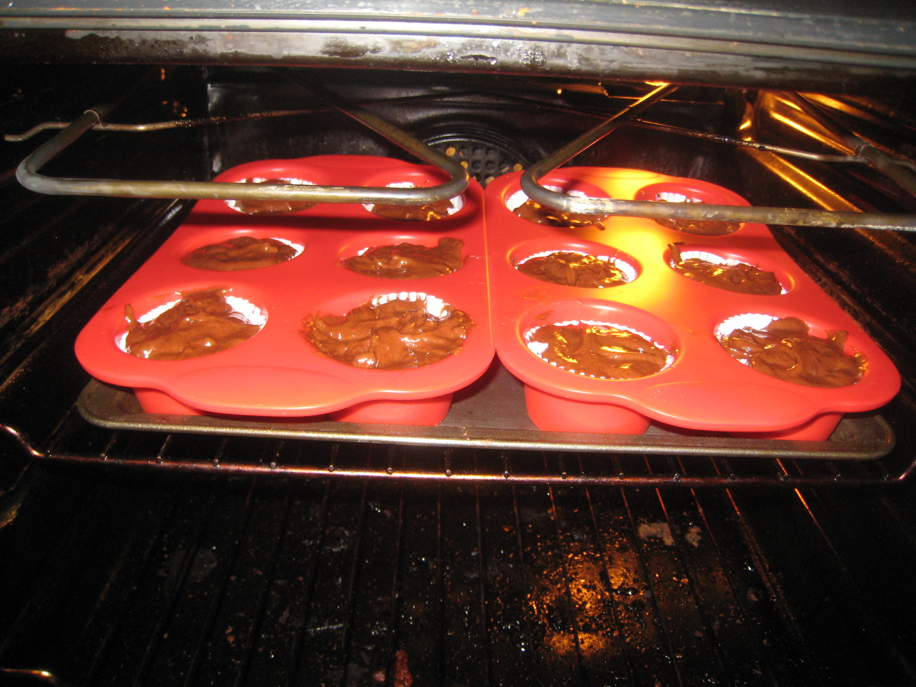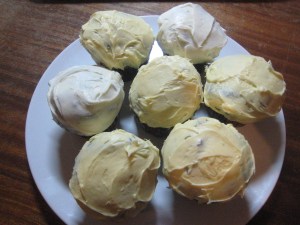 I was all ready to cup the cakes, and therefore retrieving the paper cases from the top shelf of my cupboard, when, apparently desperate to flee the confines of that wooden box and to escape their fate as cupcake clothing, the cases leapt from my finger tips and dove straight into Richard’s pot of boiling noodle water! I managed to hang on to one solitary case (the only sane one among them) while I stared helplessly at the rest bobbing about in Richard’s soon-to-be dinner. I am actually amazed that I didn’t plunge my hand in the boiling water to retrieve them, but I was for some reason fixated on the one I had in my hand, as if had I looked away it too would try to escape. Richard pushed me aside and fished out the cases with a wooden spoon. All I could say was “It’s ruined! We can’t have cupcakes now!” Richard looked at me, blinked a few times, then suggested I put them on the radiator to dry out. This seemed like a good enough idea, so I gave it a try. I kept them stacked together because the few that had separated from the pack had become totally flat and highly resistant to returning to cup form. After about 6 minutes, and with the oven already pre-heated, I decided taking a hair dryer to them would be a faster solution. It was. Once I got all the cases dried out, the road to delicious baked delights was smooth and clear.