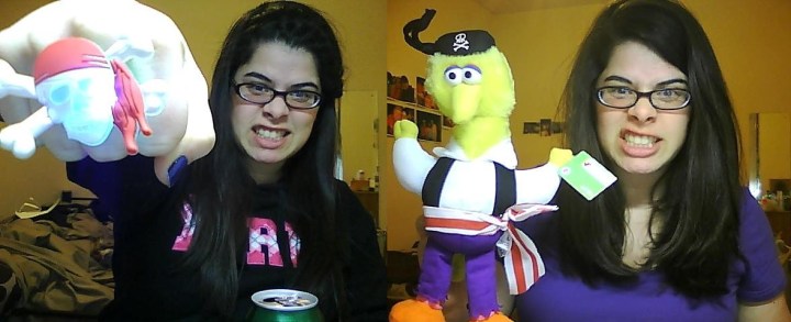 Here are some pictures to compare before and after. To make the comparison easier for everyone I have paired up two photos in which I am making a scowling face and displaying pirate themed toys. Enjoy.
