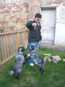 Kat – The hawk flying sounds great, I’m very envious. I hope the BBQ dinner entree wasn’t goat. They’re just too cute. We have a big enough yard for them, and they would probably keep the lawn short, but the neighbors might complain.