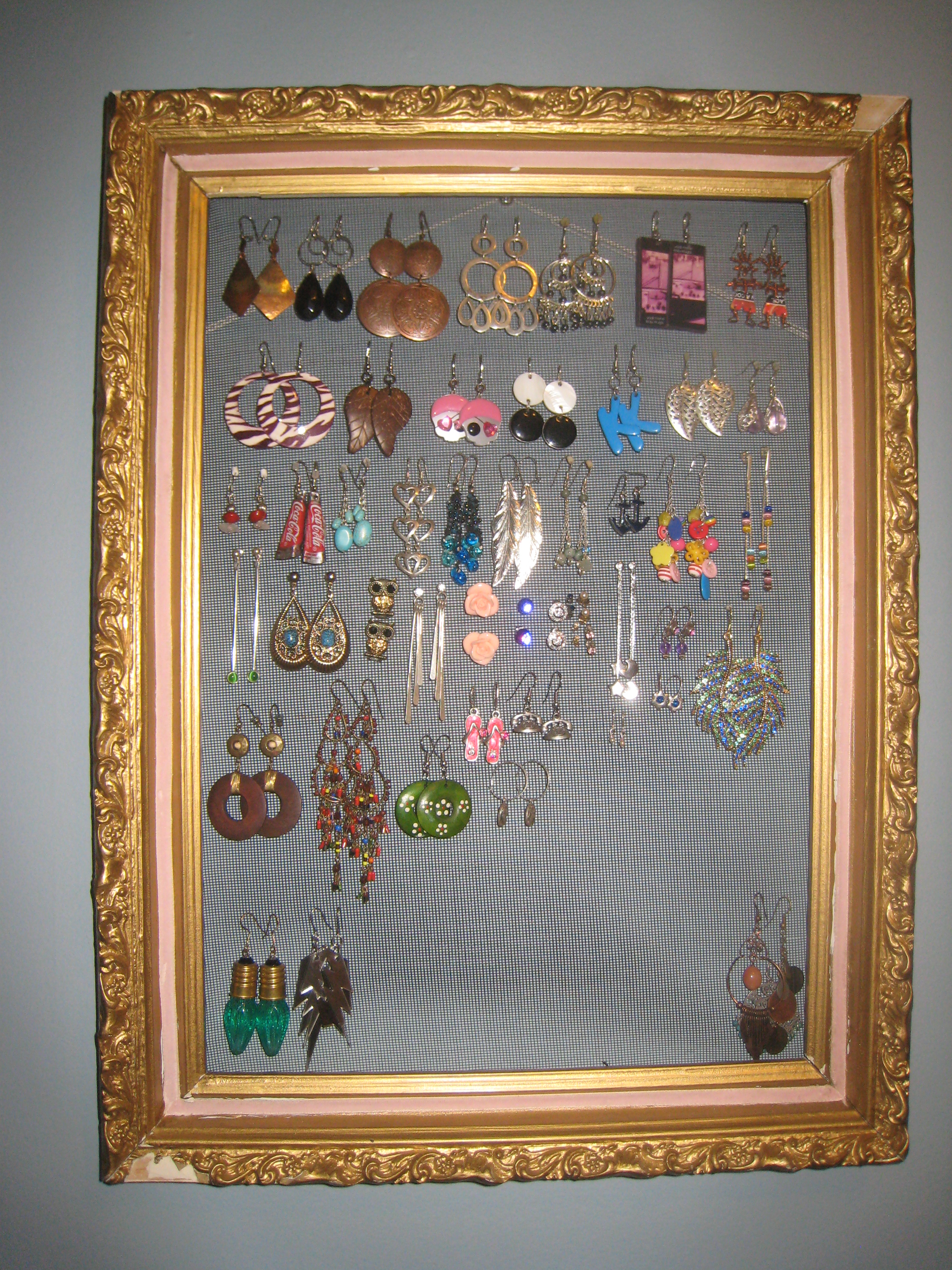 So, I have a load of earrings and just a tiny box in which to keep them. I’ve had this idea for an earring hanger for well over a year and only just got my act together to actually make it! Here it is: