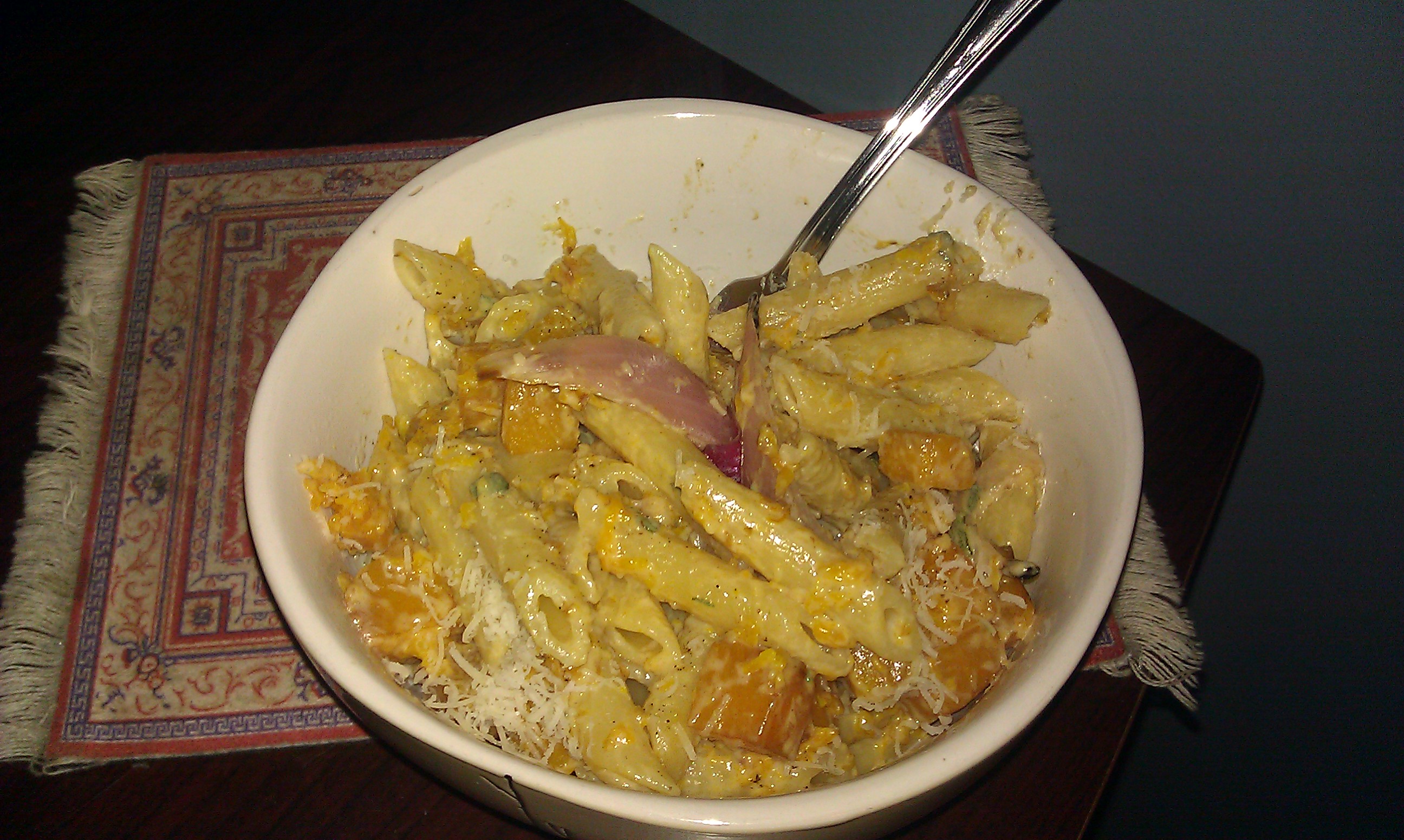I made a butternut squash penne – naturally, the picture on the recipe looks a lot nicer than my final product but it tasted good and that’s the most important part! And, as an added bonus, I only seriously burned myself twice!