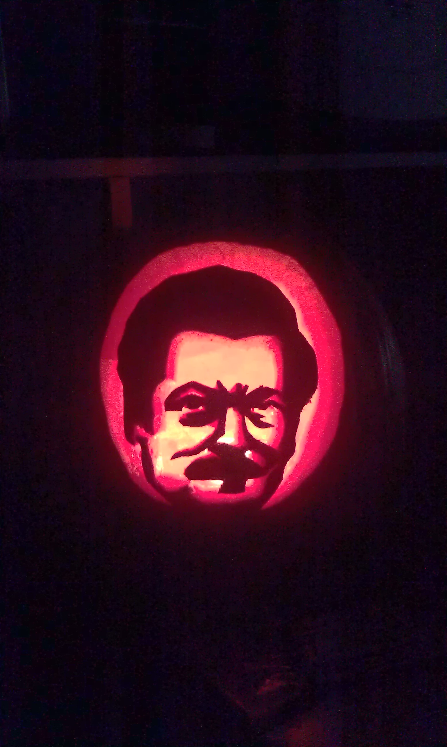Finally, this year I made an homage to my favourite TV character of the moment Ron Swanson from Parks & Recreation (if you don’t watch this show, go watch it all right now!) – he’s amazing. I am just hoping my pumpkin was able to give justice to his moustache.