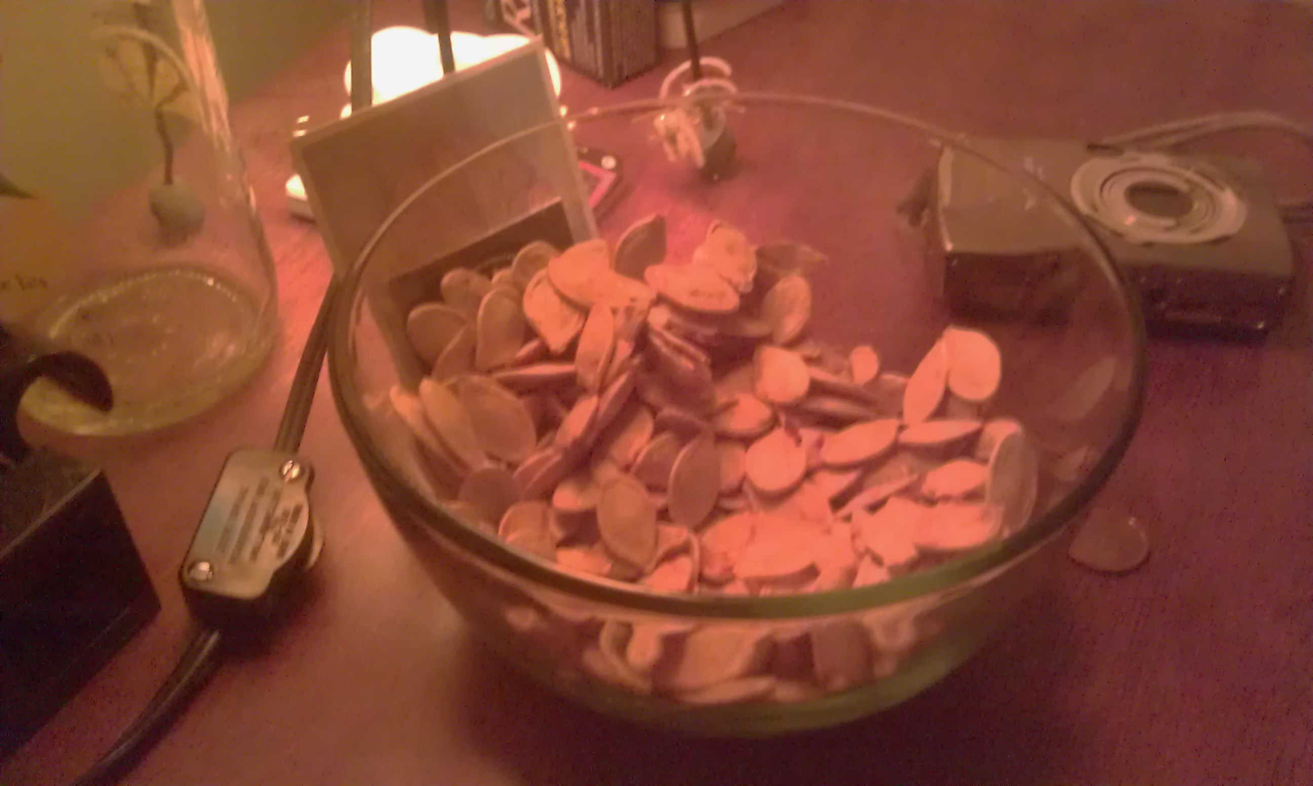 If circumstances work out, I may be carving a second pumpkin this year, as well. Of course, the satisfaction of a well carved gourd is enough to keep me going, but the added bonus is knowing that after all that meticulous cutting I get to roast and eat all the seeds I painstakingly extracted from the belly of the beast. Mmm, pumpkin seeds.